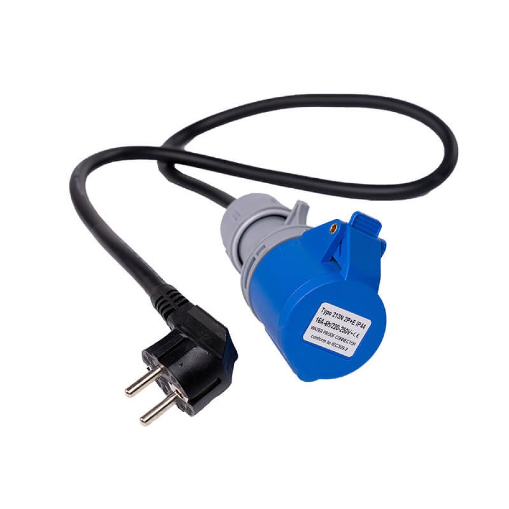 With the Solar Power Supply Schuko to CEE adapter cable, you can easily connect your camping equipment to standard power outlets. This convenient Schuko to CEE adapter cable makes it simple to convert the CEE plug of your camping equipment to a Schuko plug that fits standard outlets. Thanks to this adapter cable, you can power all your devices from the grid, even while camping.