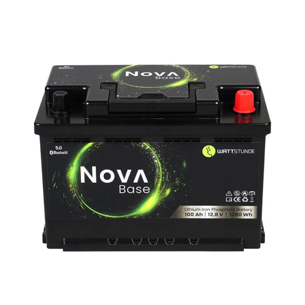 With the WATTSTUNDE NOVA Base 100Ah Battery LiFePO4, you will enjoy green energy day and night, regardless of the weather. This advanced battery has a capacity of 100 Ah (1280 Wh) and is ideal for both experienced users with various applications and newcomers. The base model offers high-quality LiFePO4 technology at an affordable price. Thanks to its easy interchangeability, you'll effortlessly integrate the NOVA Base 100Ah into your existing battery system.