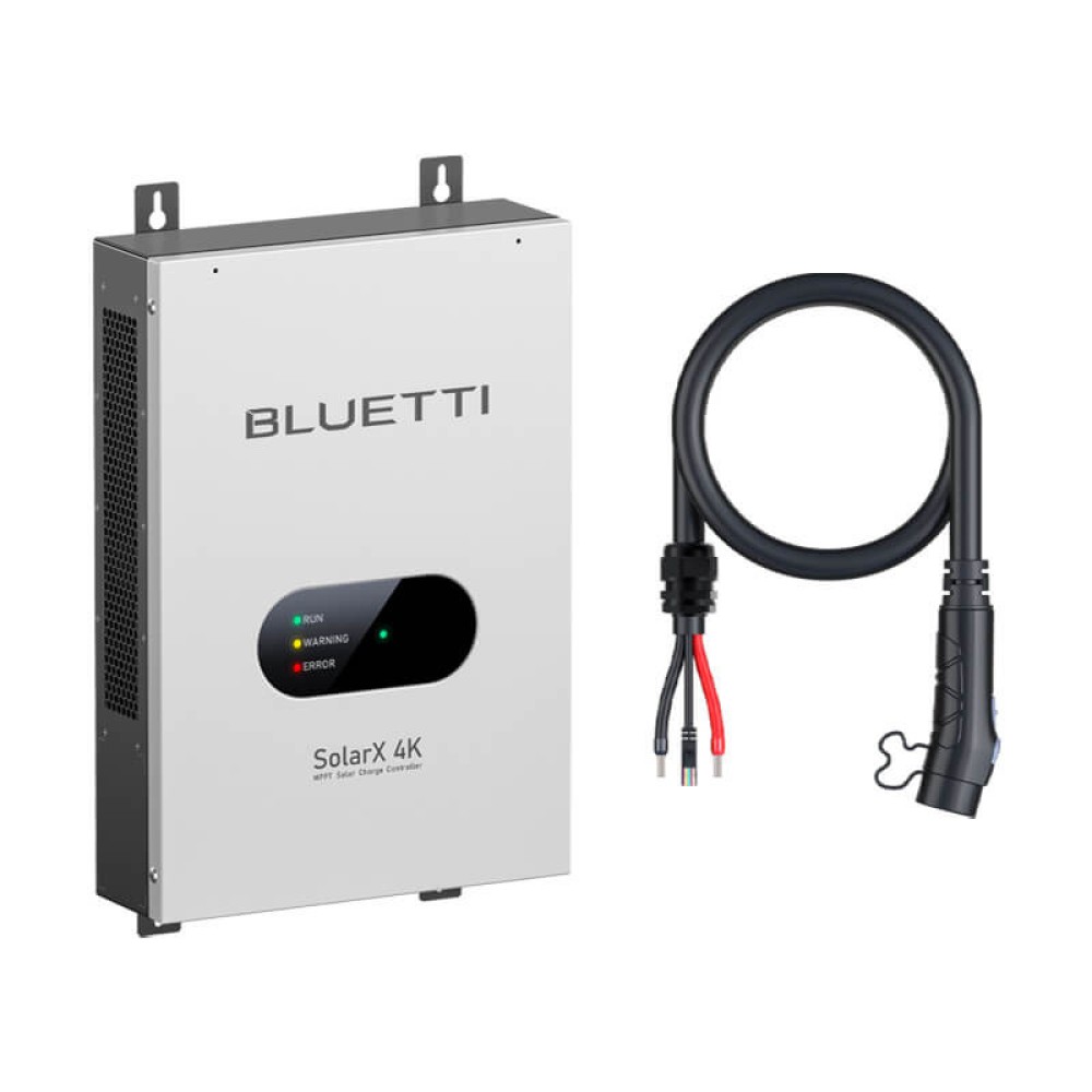 The BLUETTI SolarX 4K + Locking Terminal to P090D adapter cable is a complete set designed to efficiently charge your BLUETTI batteries or power stations using rooftop solar panels. The powerful SolarX 4K MPPT charge controller maximizes solar input, while the included adapter cable ensures a safe and direct connection to your BLUETTI system.