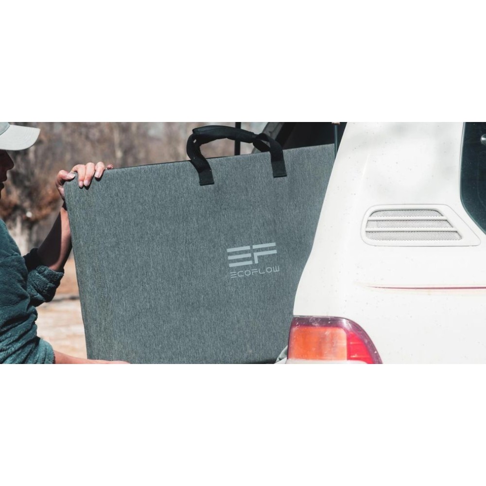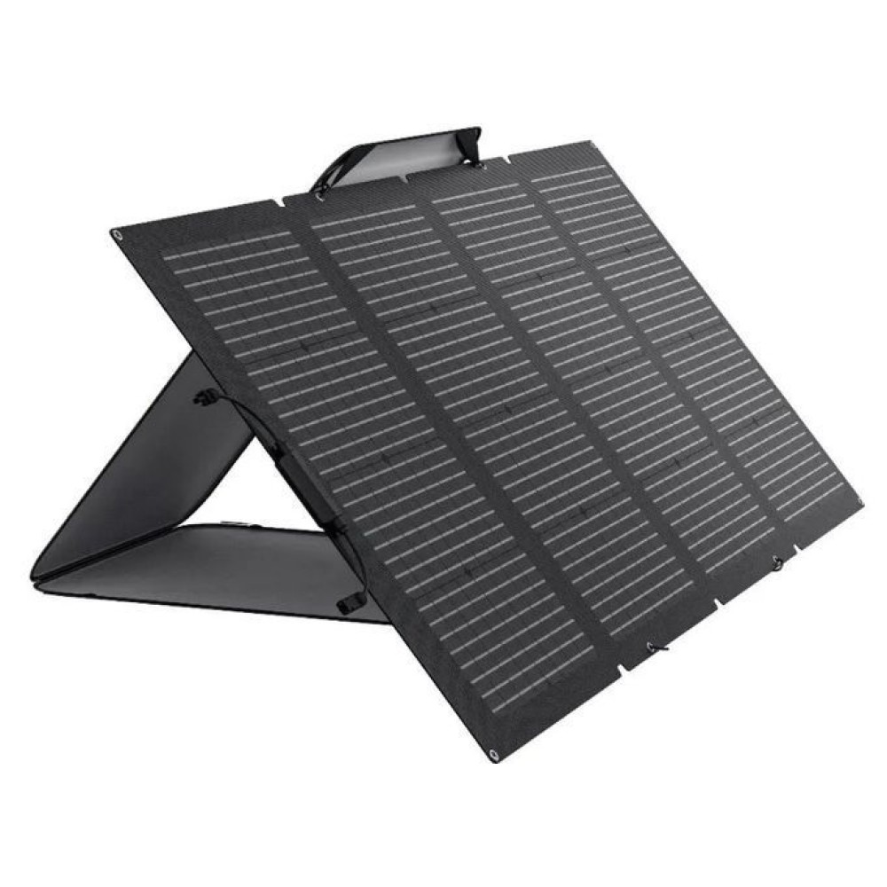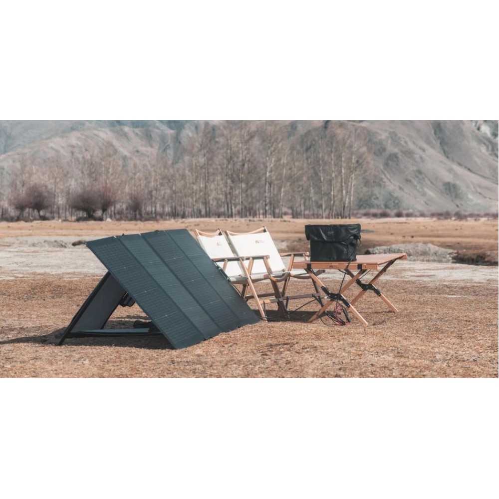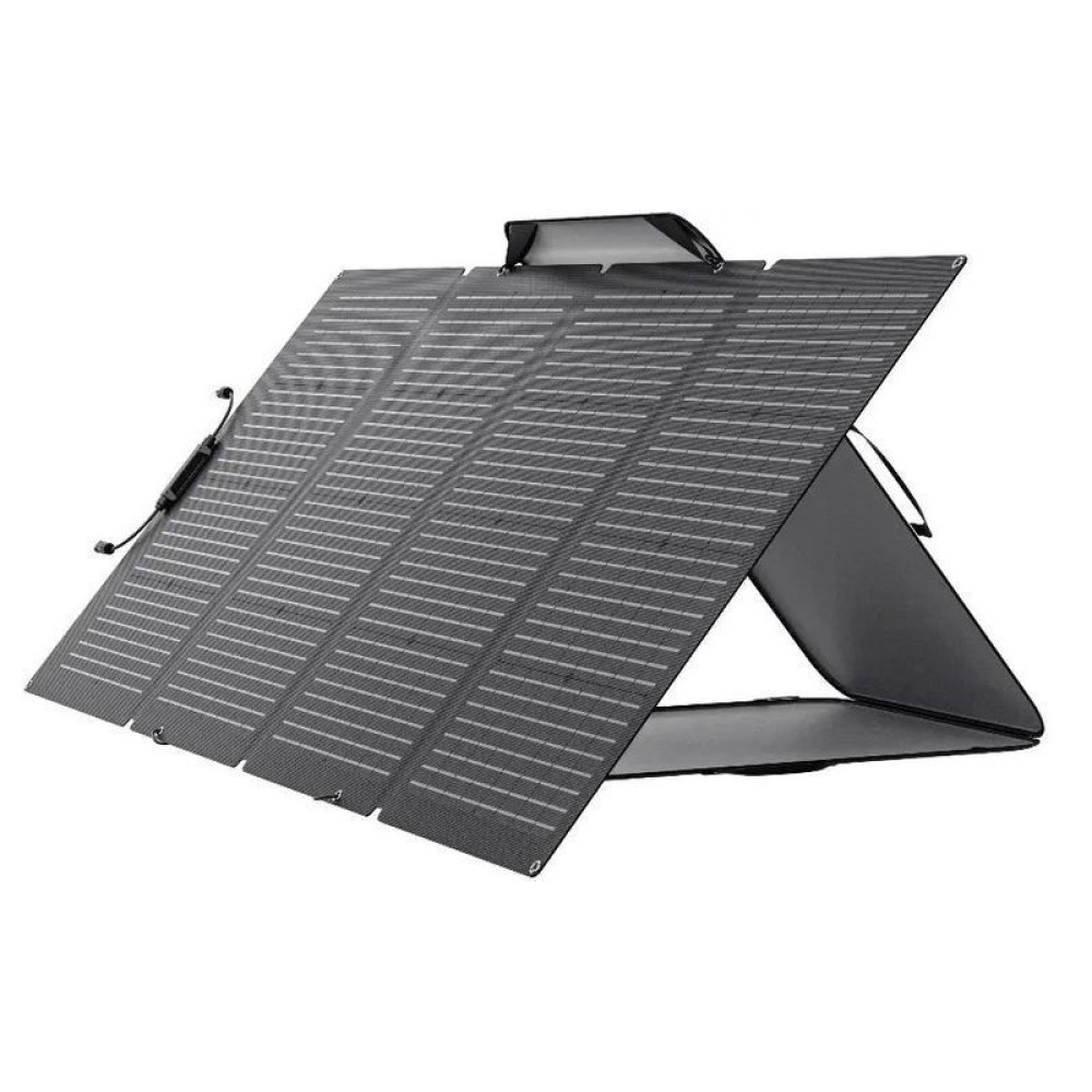 Experience the latest technology with the EcoFlow 220W Bifacial Portable Solar Panel, a solar panel that maximizes energy output with its dual-sided design. It features a primary side of 220W and a 155W side on the back of the panel, suitable for ambient light. This unique design results in up to 25% higher output compared to standard 220W solar panels.