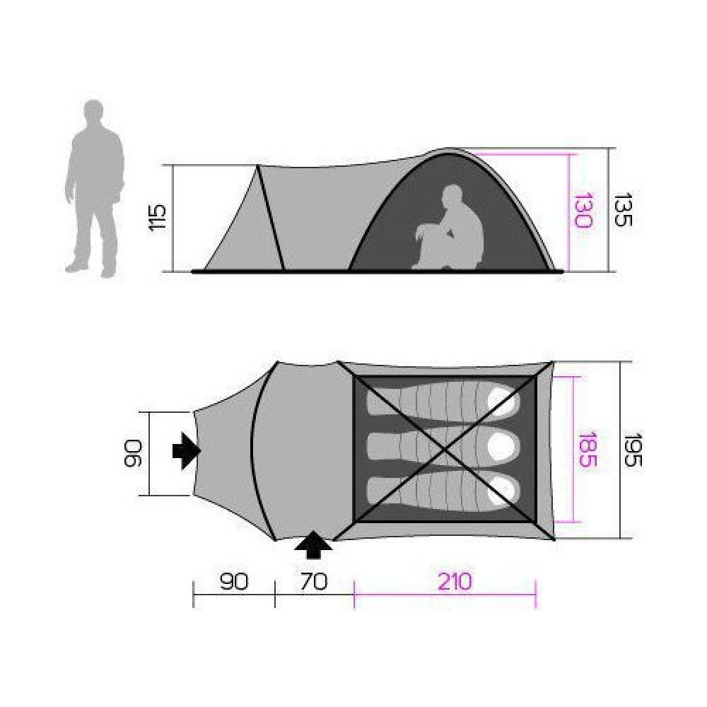 - Размер внутренней палатки: 185 x 210 x 130 см