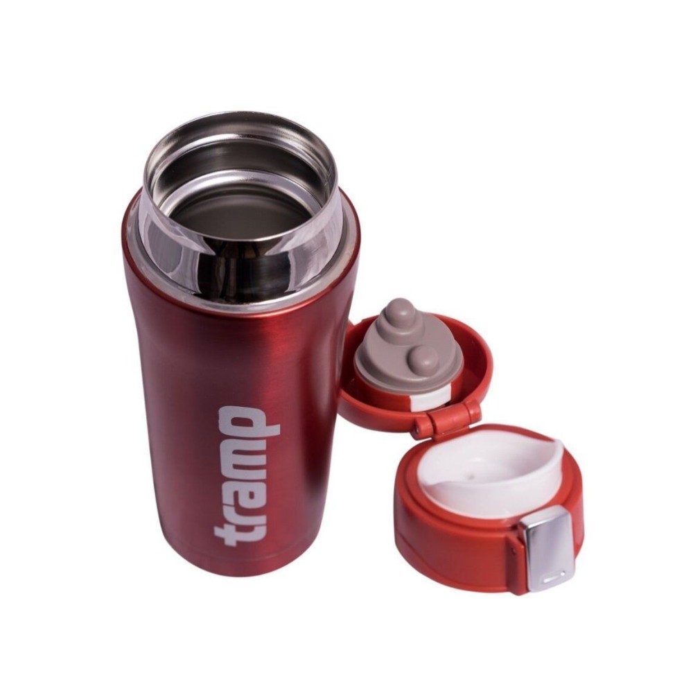 Стильный и очень удобный термос Tramp объемом 0,35 л, который легко можно отнести к категории термокружек, отличный выбор для офиса, города или поездки. Благодаря нажатию на специальную кнопку, крышка термоса откидывается, и он превращается в кружку.